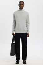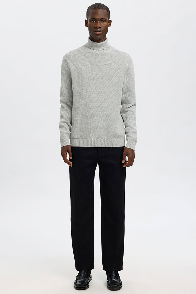 Dane LS Structure Knit Roll Neck Light Grey Melange