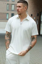 Relax Plisse Half Zip SS Polo Egret