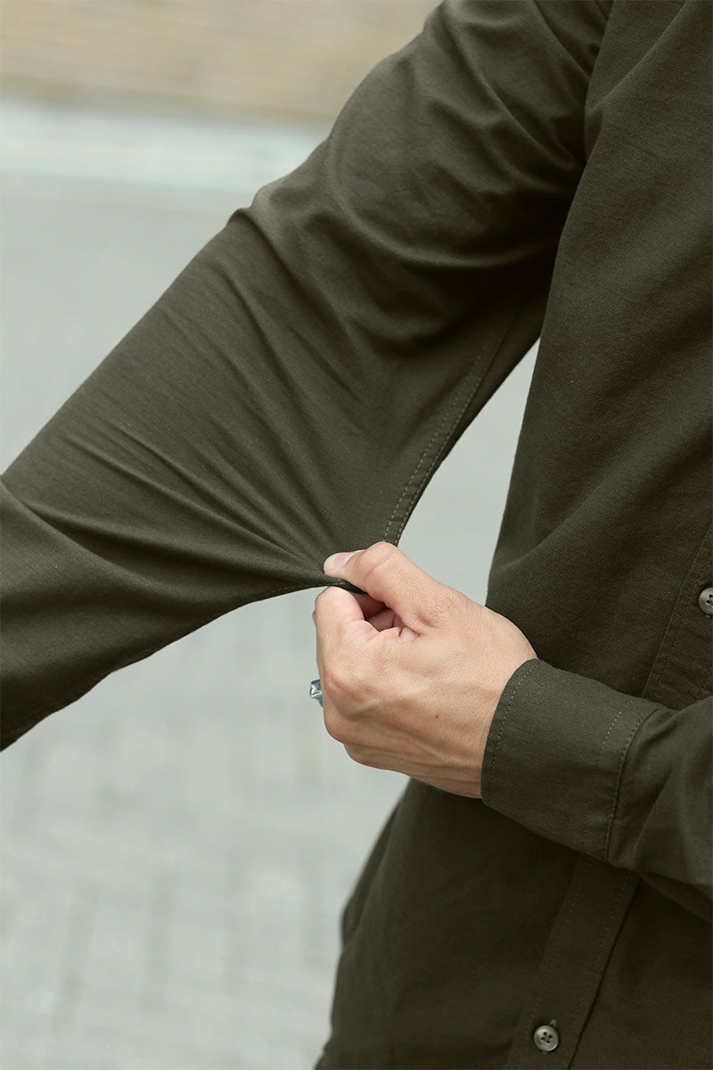 Val Oxford Stretch Shirt LS Forest Night