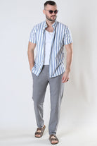 Mark Cotton Linen Pants Grey Pinstripe