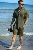Tel Viscose Linen Shorts Olive Night