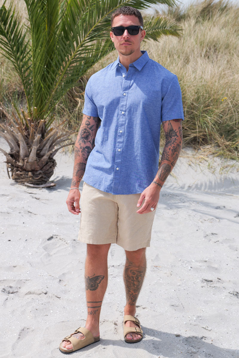 Regular Sun Linen Shirt SS Medium Blue Denim