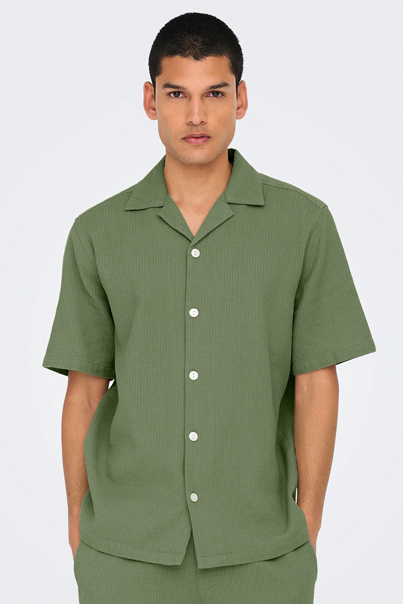 Bertil Waffle SS Resort Shirt Deep Lichen Green