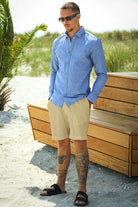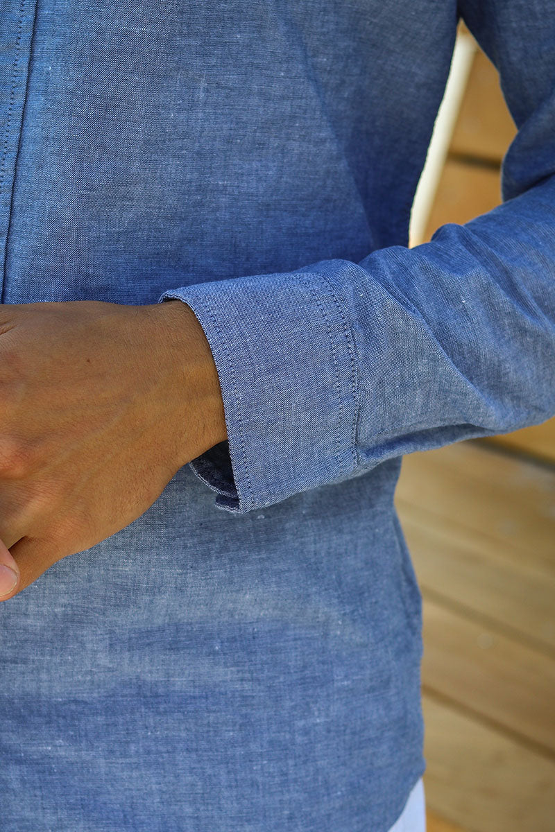 - Lang mouw linnen overhemd met klassieke kraag.