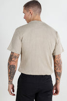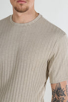 - Met geribbelde randen aan de zoom en mouwen.
