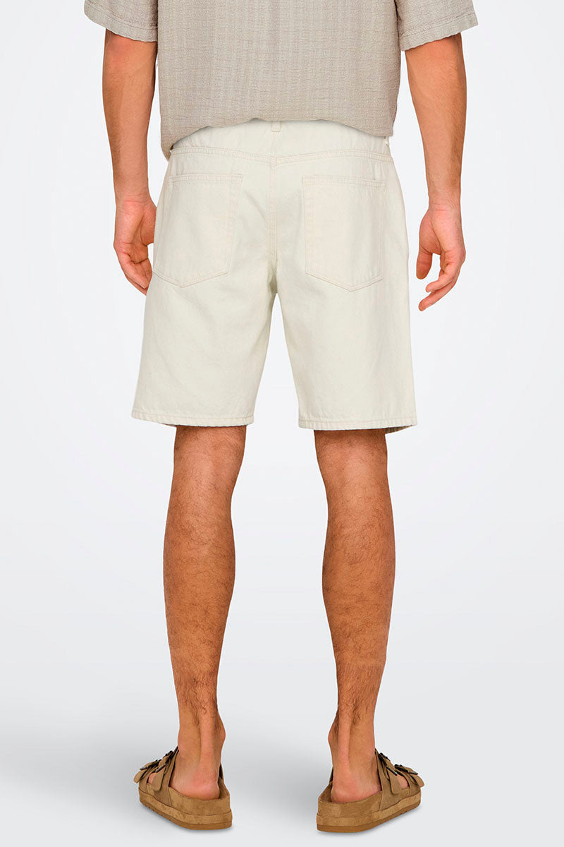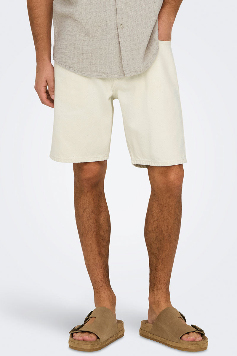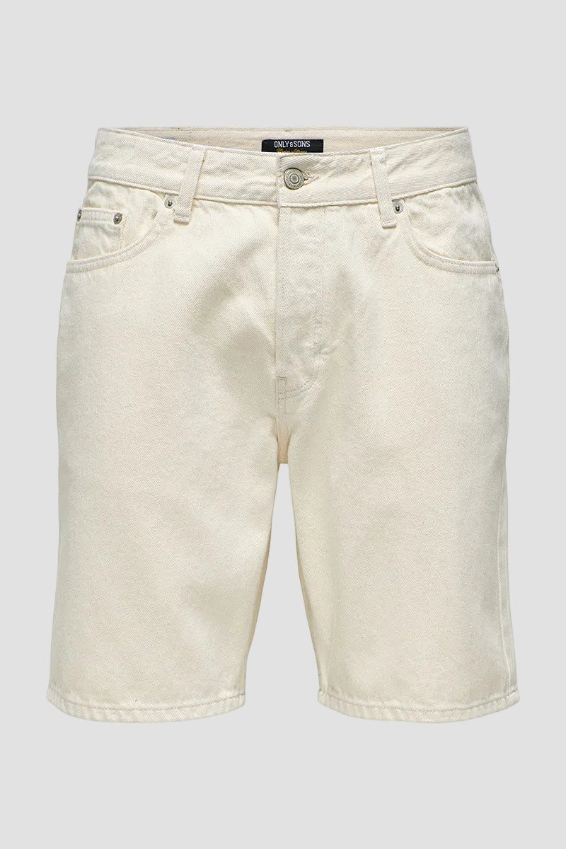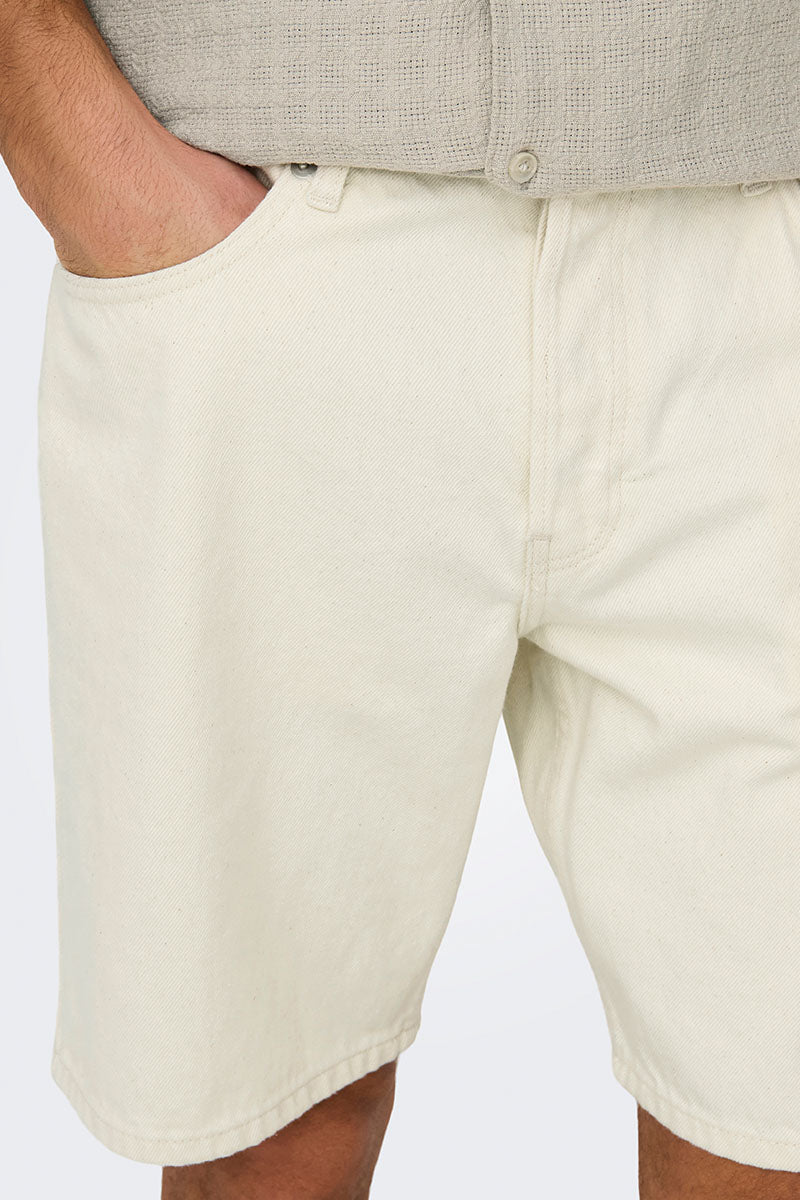 Edge Straight Fit Denim Shorts Ecru