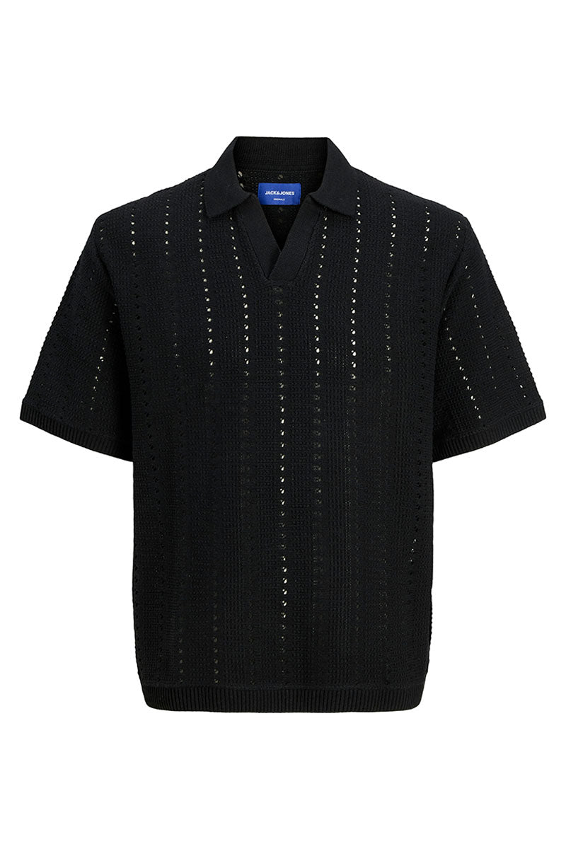 Aros Knit Easter SS Crochet Polo Black