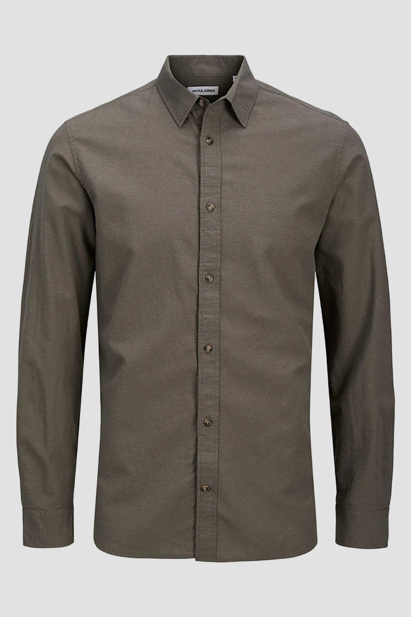 - Lange mouwen linnen overhemd met klassieke kraag