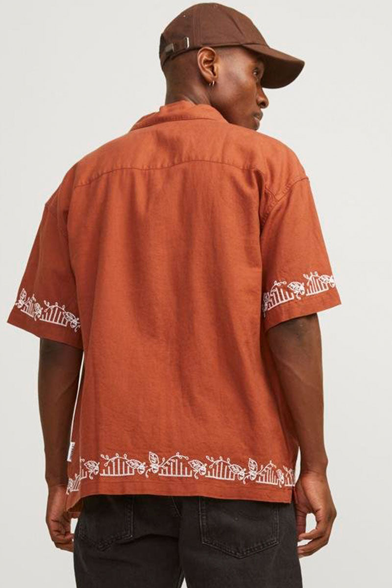 Milos Linen EMB Shirt SS Maple Syrup