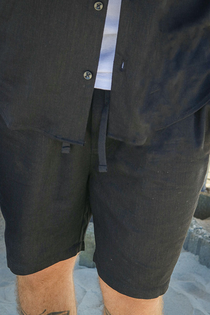 Tel Viscose Linen Shorts Black