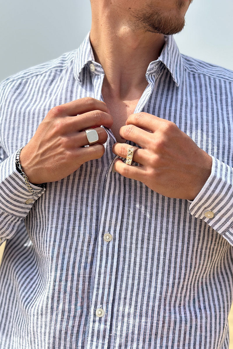 Caiden LS Stripe Linen Shirt Dark Navy