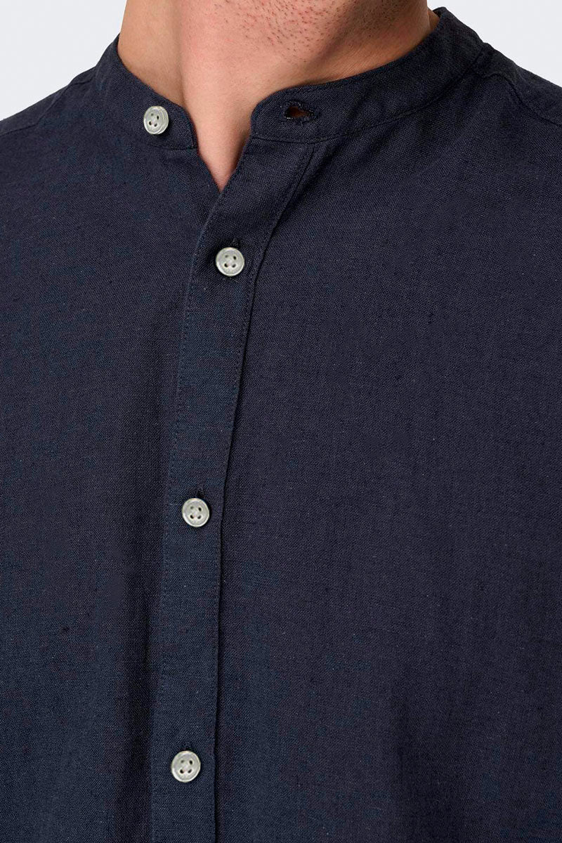 CAIDEN LS SOLID LINEN MAO SHIRT Night Sky