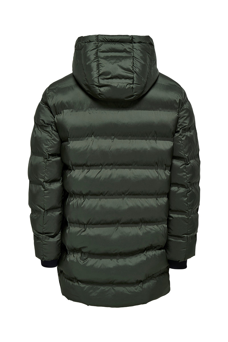 - Lange pufferjas met hoge kraag