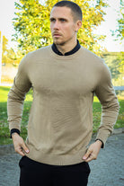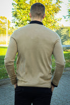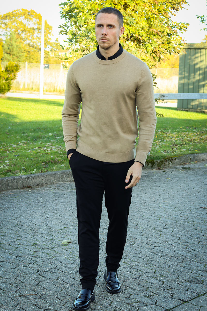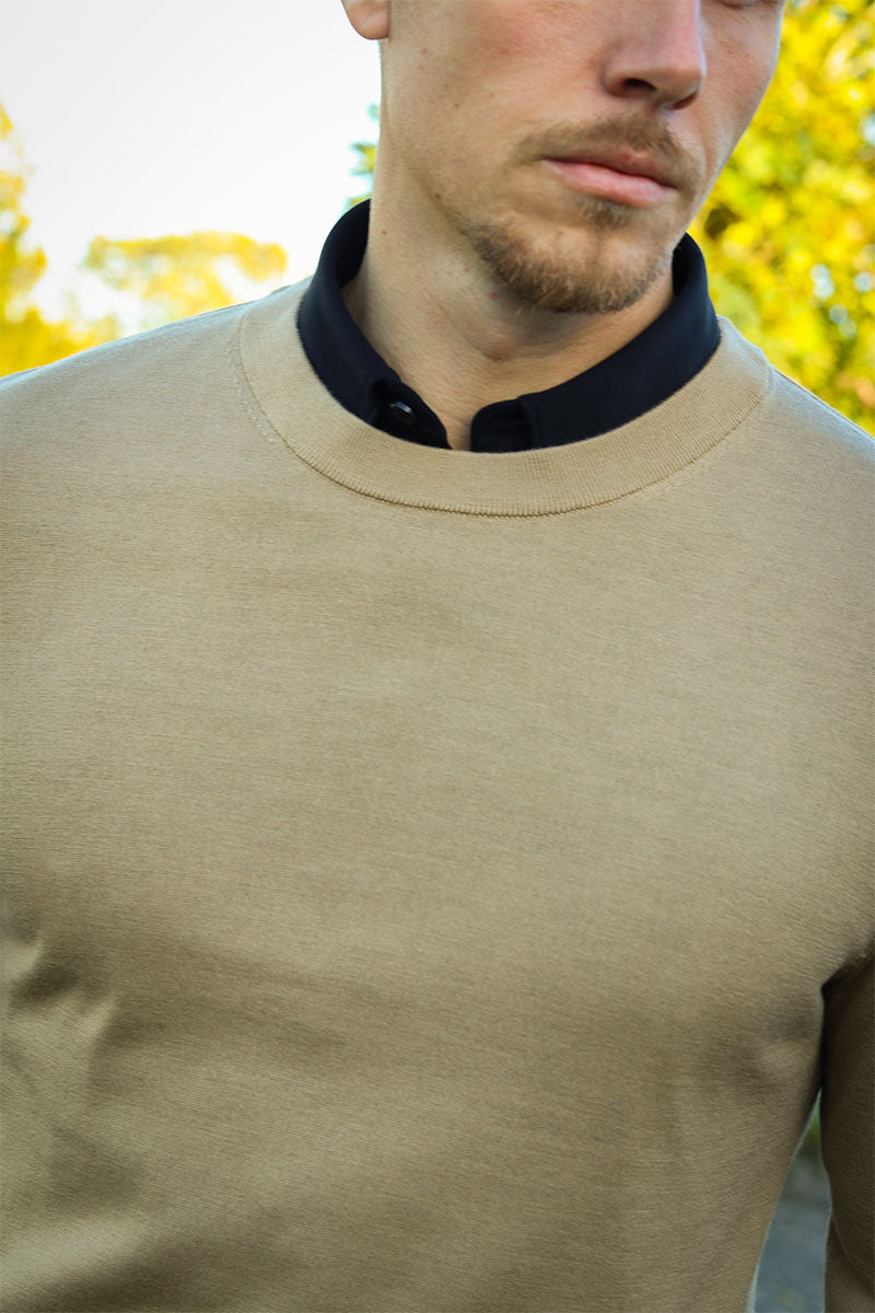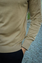 • Beige trui met lange mouwen.