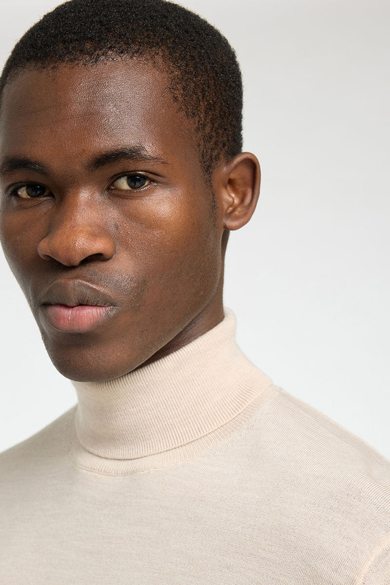 Tray LS Merino Knit Roll Neck Oatmeal