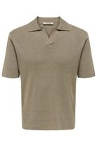 Dit gebreide polo-shirt combineert comfort met een tijdloze uitstraling, ideaal voor zowel dagelijks gebruik als feestelijke gelegenheden. Het shirt heeft een regular fit, korte mouwen en een splitnek die zorgt voor een klassieke en luchtige afwerking. De kleur Desert taupe met een mélange-detail geeft het een subtiele, natuurlijke uitstraling die makkelijk te combineren is.
