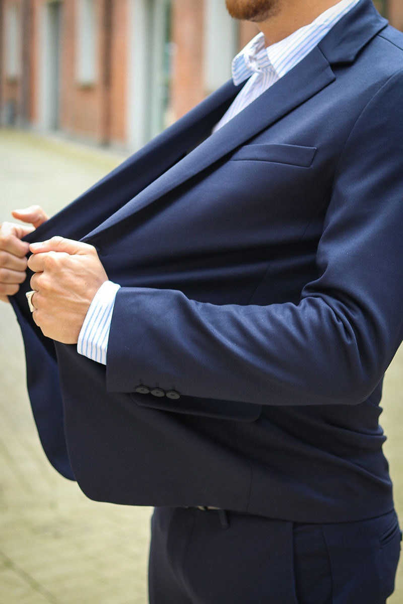 De perfecte pasvorm van het pak hangt af van je lichaamsbouw. Als je meer aan de slanke kant bent, zal een slank pak goed staan. Heb je een breder silhouet, dan staat een wijdvallend pak goed. Welk pak je ook kiest, je kunt niet verkeerd gaan bij 2Trendy. Je kunt het pak ook altijd meenemen naar een kleermaker als er aanpassingen nodig zijn. Een van de dingen die je er echt goed uit zal laten zien, is wanneer de mouwen van de blazer tot rond je pols gaan, en ongeveer een centimeter ruimte laten voor het overhemd. Zo zie je er buitengewoon stijlvol uit. Je kunt ook spelen met de lengte van de broek. Tegenwoordig is een iets kortere broek in combinatie met loafers erg populair. Wil je echter de ouderwetse classy look, dan is een broek van normale lengte met een paar geklede schoenen de juiste keuze.